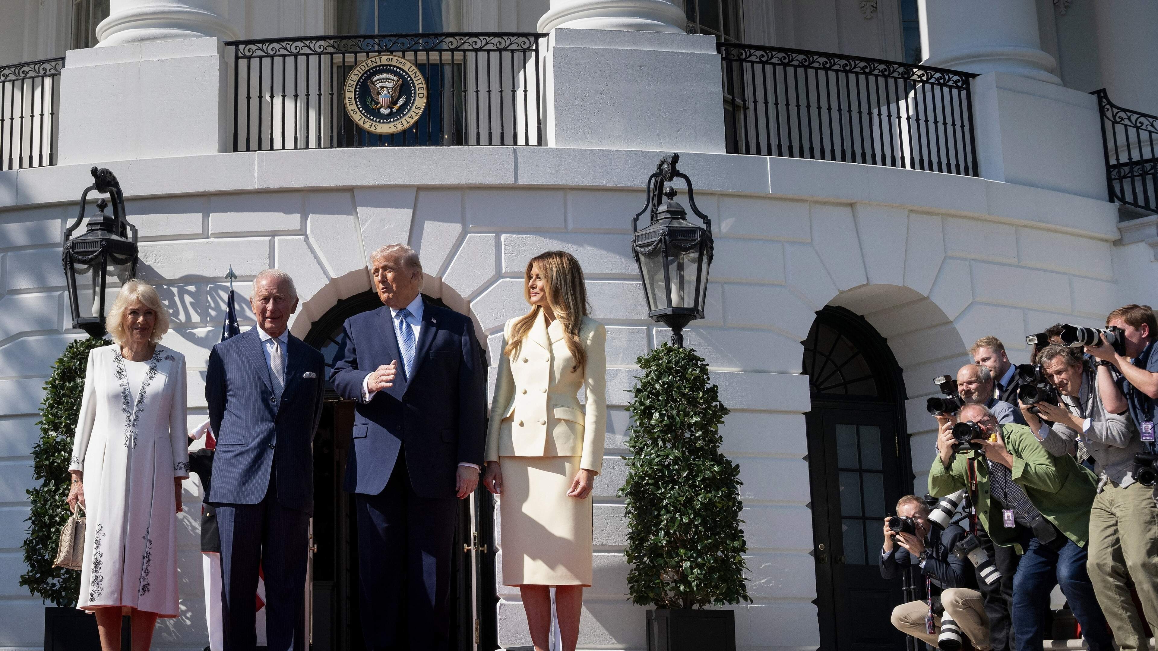 De Amerikaanse president Donald Trump en zijn vrouw Melania hebben de Britse koning Charles en zijn vrouw Camilla maandag ontvangen in het Witte Huis. Charles en Camilla arriveerden maandag in Washington voor een vierdaags staatsbezoek aan de VS.